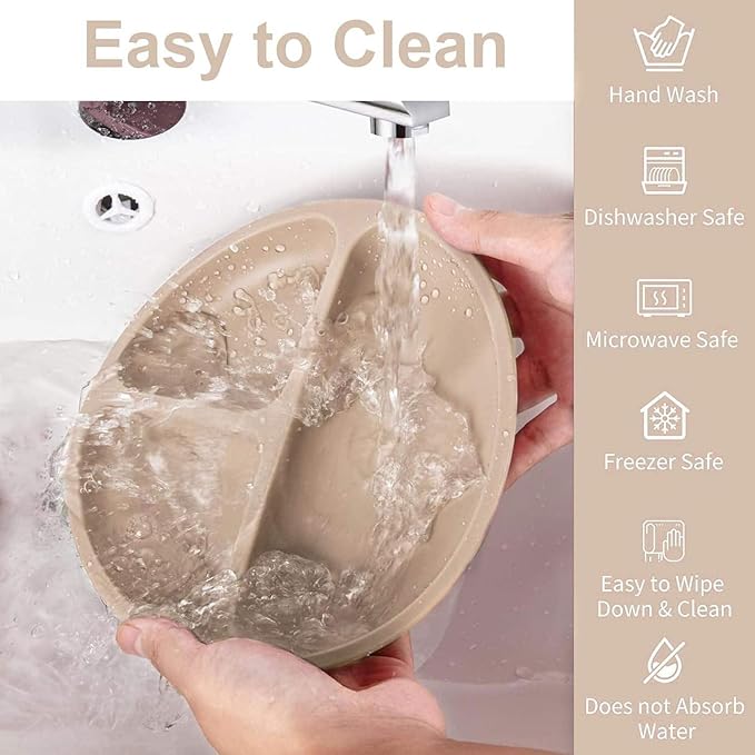 - 【Strong Suction Power】- Our baby plates and bowls set adopted a large suction base, which sticks firmly on smooth surfaces including high-chair trays and can effectively avoid the baby take it off. Divided plate design can serve different foods. Let your baby start to learn self feeding without worrying about them making a mess on the floor or dropping their plates & bowls.Make your baby and you enjoy everyday mealtime.