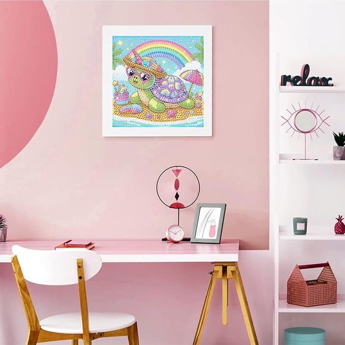 Sea Turtle Diamond Art Painting Kits with Frame- Animals Diamond Painting Kits with Frame, Cute Gem Art Kits for Wall Decoration 7X7 Inch