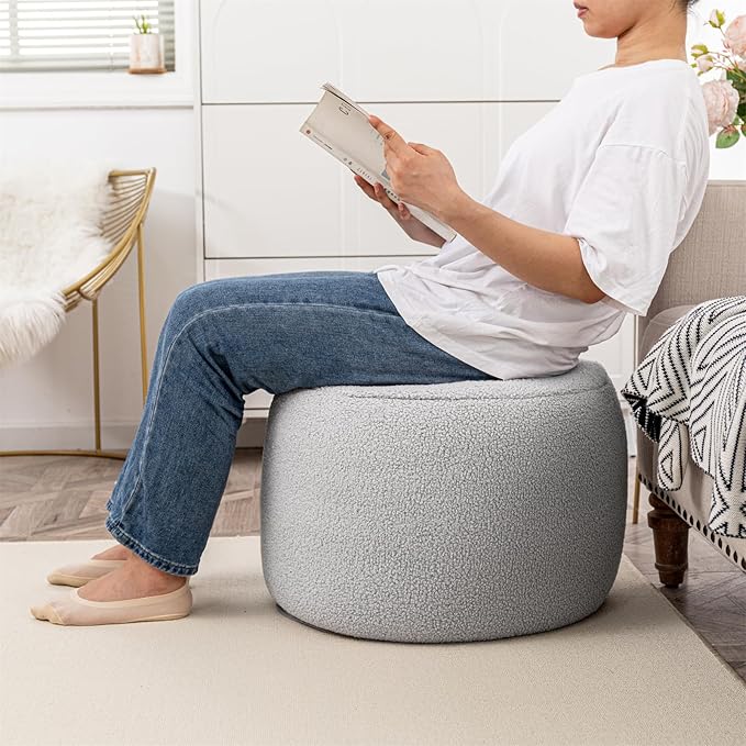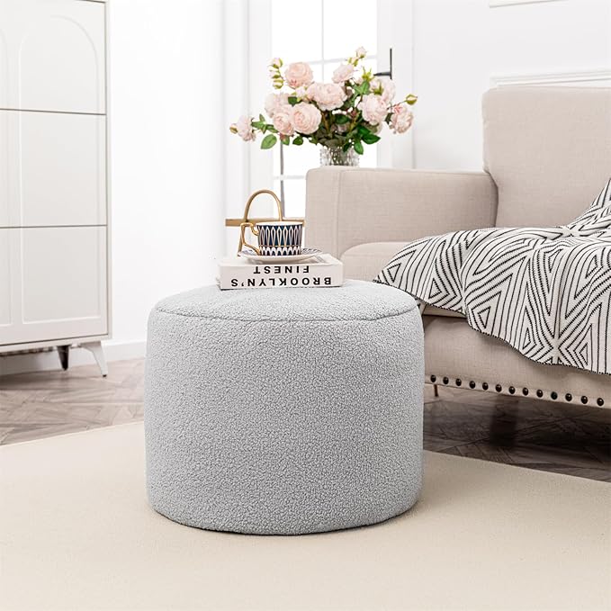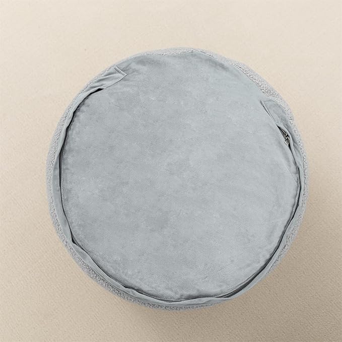 Round Pouf Ottoman 20 x 20 x 14 Inches Boho Poof Home Decor Floor Pouffe Ottoman Foot Rest for Couch Sofa Bean Bag Ottoman Chairs Living Room Bedroom Quiet Grey