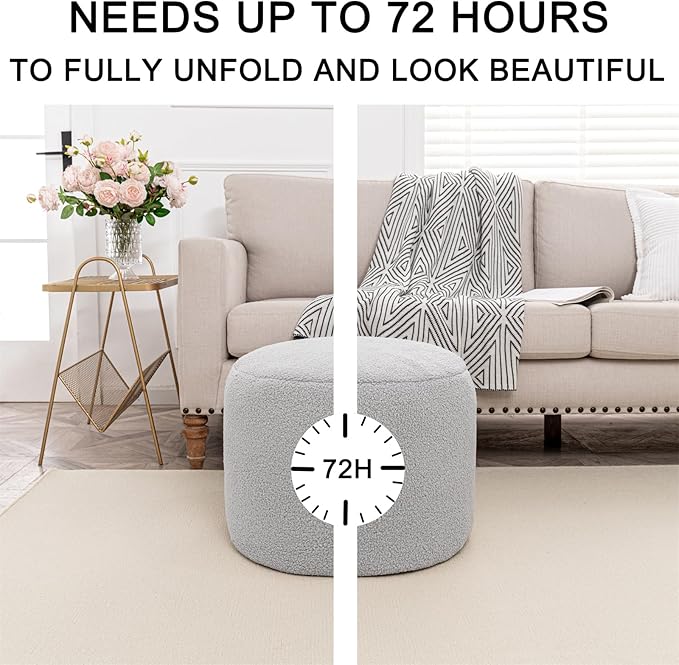- 【No Assembly Required】There is no need to assemble.Vacuum-packed for efficiency, Just allow the ottoman pouf up to 72 hours to fully expand.You'd better put in a ventilation and warm place.Achieve optimal foam hardness within 7 days for enduring support and experience a new level of well-being.