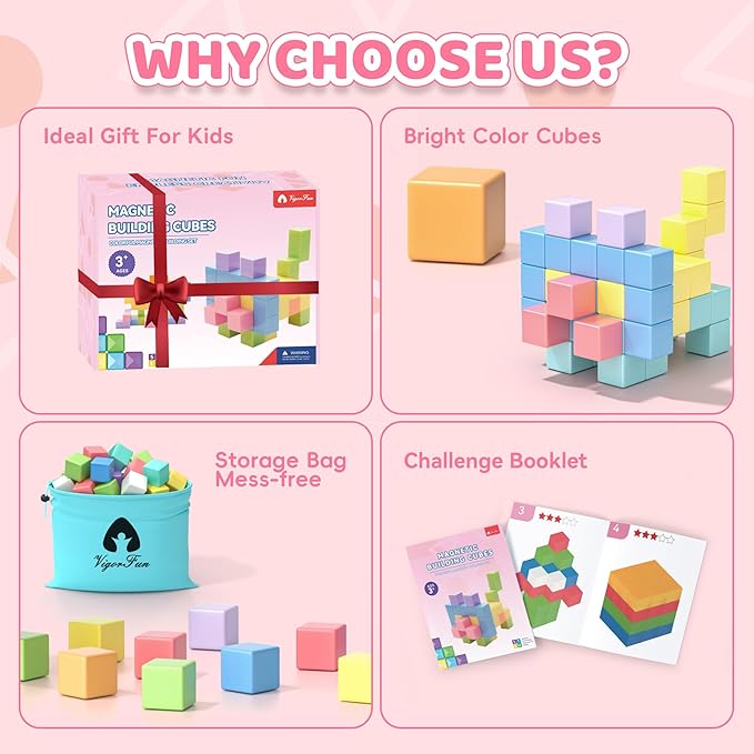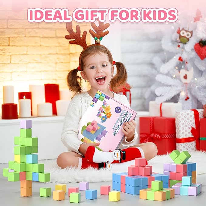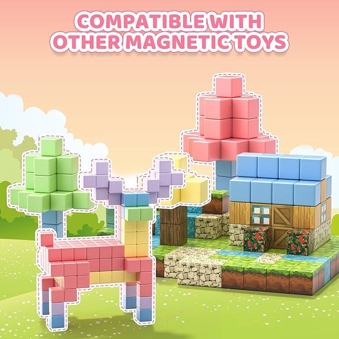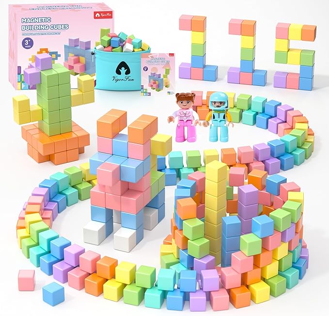 - 115 PCS Magnetic Building Blocks: This magnetic blocks set contains 112 pcs macaron color magnetic blocks, 2 magnetic toy figurines, a manual and a storage bag. Made of reliable ABS material with a smooth and rounded surface, ensuring safe and worry-free play for children