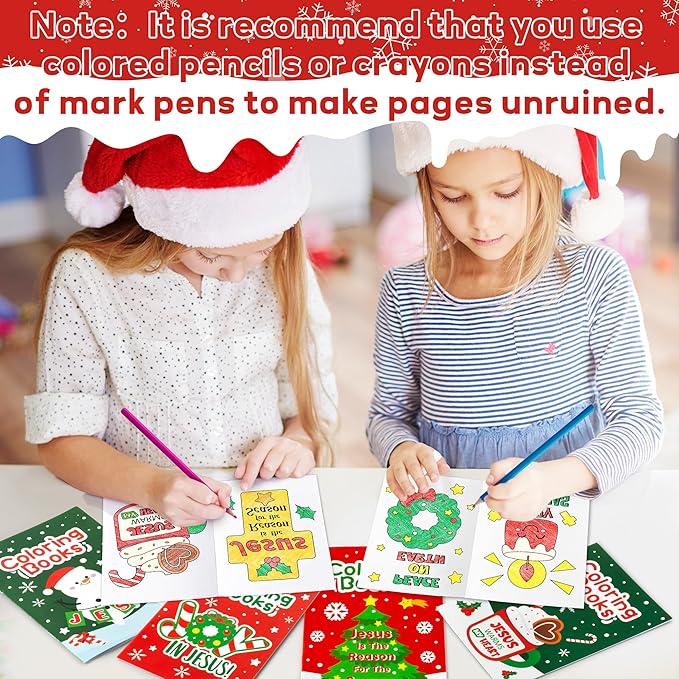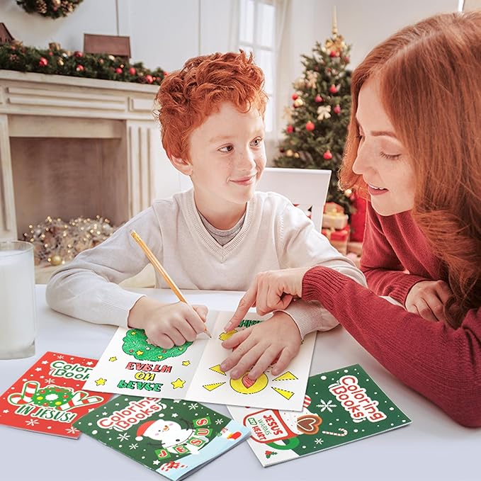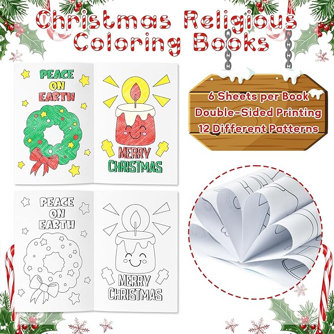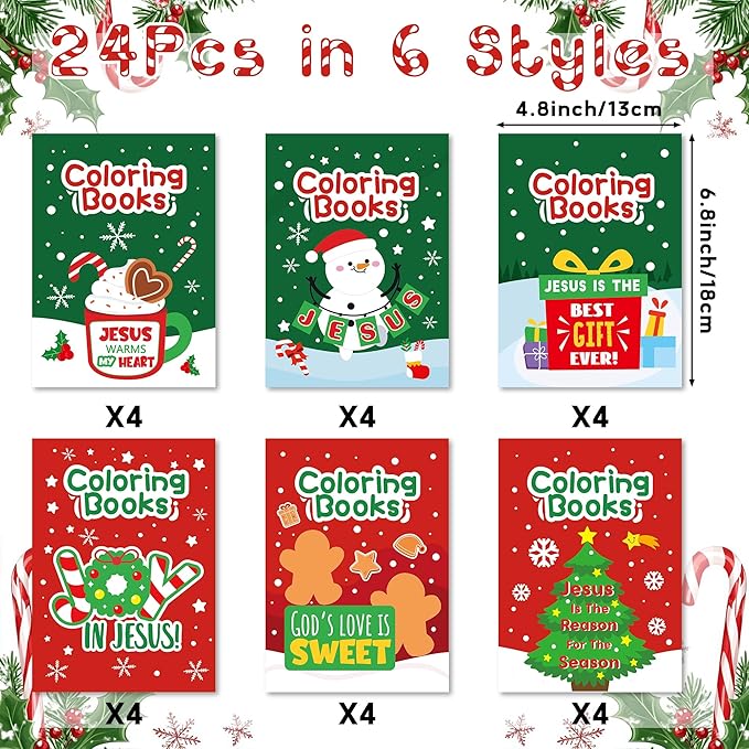 24Pcs Christmas Religious Coloring Books - Christian DIY Color-in Pages Booklet Bulk Drawing Xmas Theme Activity Party Supplies for School Classroom Rewards Holiday Artwork Gift for Kids
