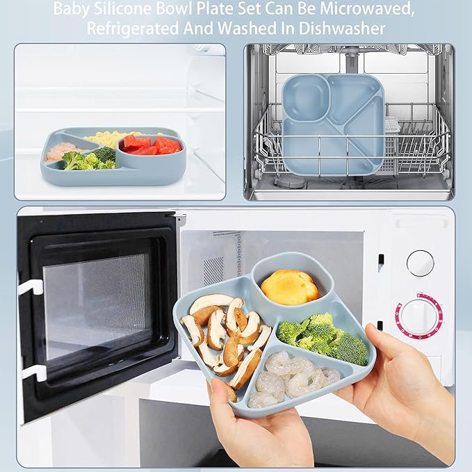 - Manage Baby Dish Set: The plate have suction points at their bases to help them stay secure on top of high chair trays, tables, and countertops. Effectively preventing your baby from throwing or tipping over the plate & bowl and making a mess