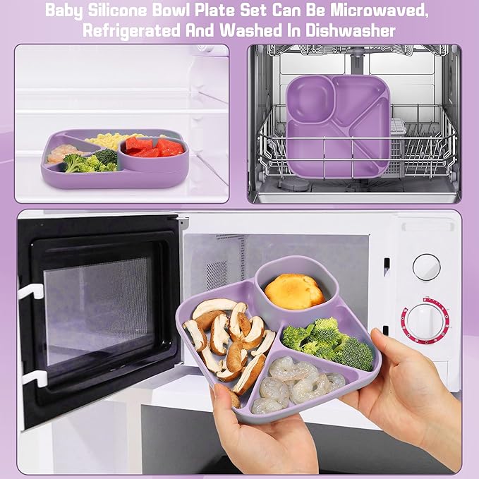 • A Durable Dining Set: Silicone baby led weaning set is hard to stain or damage and won't hurt a teething toddler's gums. It's also soft, sturdy, flexible, and without sharp edges. The baby feeding set includes everything you need for baby feeding