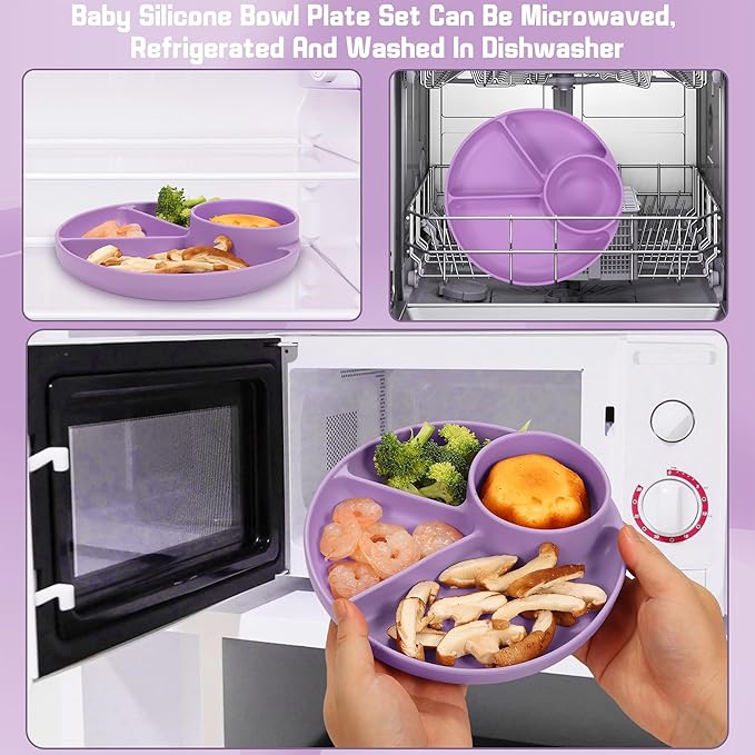 - Manage Baby Dish Set: The plate have suction points at their bases to help them stay secure on top of high chair trays, tables, and countertops. Effectively preventing your baby from throwing or tipping over the plate & bowl and making a mess