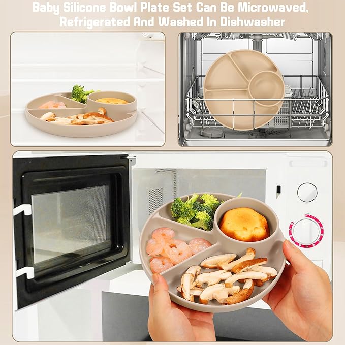 • Manage Baby Dish Set: The plate have suction points at their bases to help them stay secure on top of high chair trays, tables, and countertops. Effectively preventing your baby from throwing or tipping over the plate & bowl and making a mess.