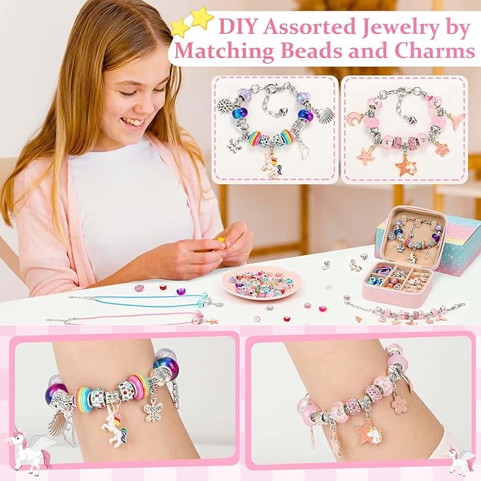• Dream Gift for Little Girls - The charm necklace making kit for girls 8 9 10 11 12 year old is an ideal gift. Exquisite bracelet case makes girls' toys great arts and crafts kit for kids ages 8-12 birthday parties, New Year, and all kinds of festivals. Be ready to surprise your girls with this DIY bracelet making kit on their special day