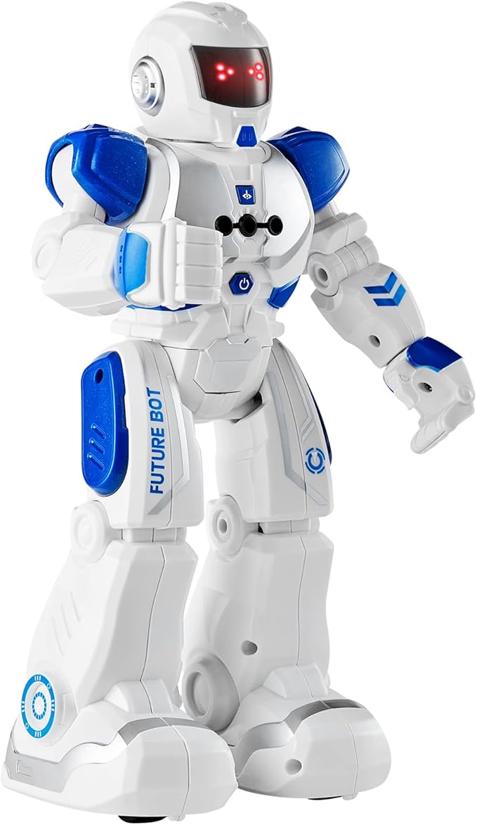 - ✅ [Remote & Gesture Control]: Take control with a wave of your hand! This gesture-sensing robot responds to both the infrared controller and your hand gestures, easily turning left and right, sliding backward and forward. It also comes with auto display and obstacle avoidance features. Watch its bright blue LED eyes light up as it moves!