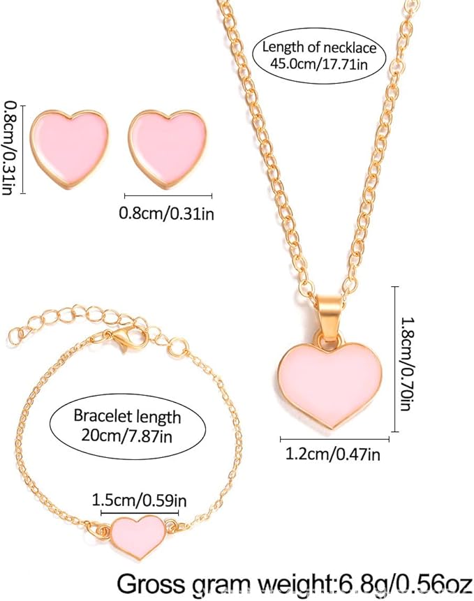 - Package include:1* Girls Pink Dress, 1* white sock, 1* wig, 1 pair of Pink heart earrings,1* Pink heart necklace, 1* Pink heart Bracelet, 1* Pink heart hairpin