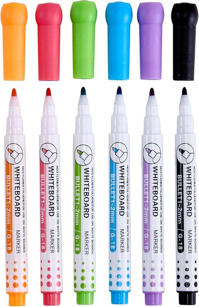 - Low-Odor Markers: These low-odor markers come in 6 vibrant colors, perfect for home, school, or even the office. They wipe clean easily with a dry cloth or eraser, leaving no remains behind—just a clean surface ready for the next masterpiece.