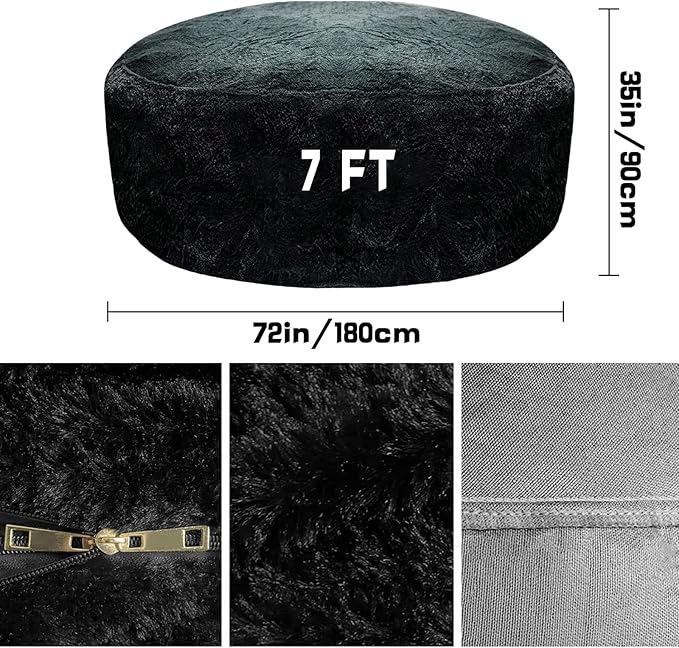 - 【High-Quality Giant Bean Bag Cover】5FT=52*30in (Capacity: 1-2 people--Measurements are taken from an unfilled bean bag.) 6FT=60*34in (Capacity: 2-3 people--Measurements are taken from an unfilled bean bag.) 7FT=72*35in (Capacity: 3-4 people--Measurements are taken from an unfilled bean bag.) Package Included: 1 x Sofa Bean Bag Cover (NO Filler)