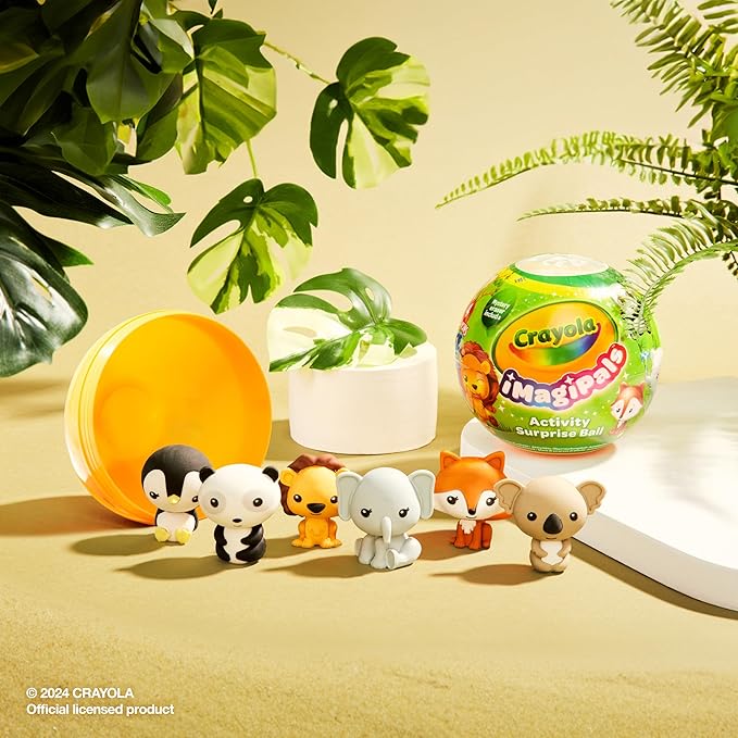 - CRAYOLA IMAGIPALS SURPRISE BALLS: This set includes 2 Animal-Themed ImagiPals Surprise Balls, 4 Crayola Crayons, 1 Sticker Set, 1 Basecard, 1 Animal-Shaped Eraser, 1 Collectable Coloring Sheet, and 1 Collectable Card/Assembly Sheet.