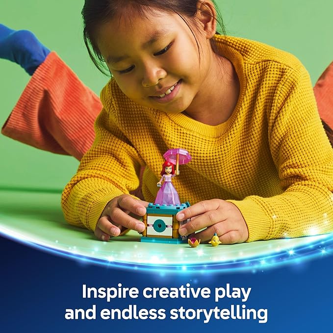 - MULTI-FUNCTIONAL TOY – Turn the key on the stand to spin the plate and twirl Ariel around, then store the LEGO ǀ Disney mini-doll figure inside the ‘diamond’ dress using the umbrella as a lid