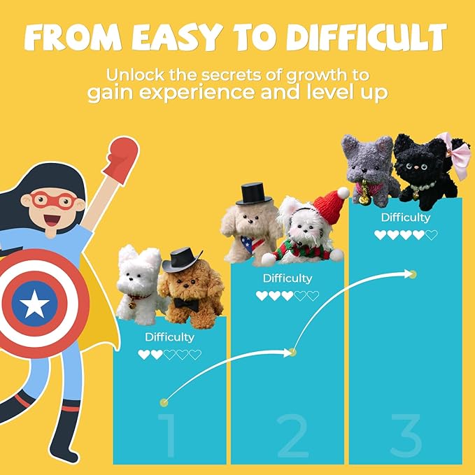 - 🦮Creative Fun for All Ages:Build 6 adorable plushies characters with increasing difficulty levels! This kids art supplies enhances hand-eye coordination, focus, and creativity in kids, while offering adults a relaxing, stress relief crafting experience.