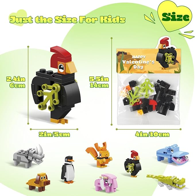 - Animal Kingdom Delight: Each of the 24 packs is individually wrapped with a unique Valentine's day card, making animal block kits as a perfect gift for Valentines classroom exchange.