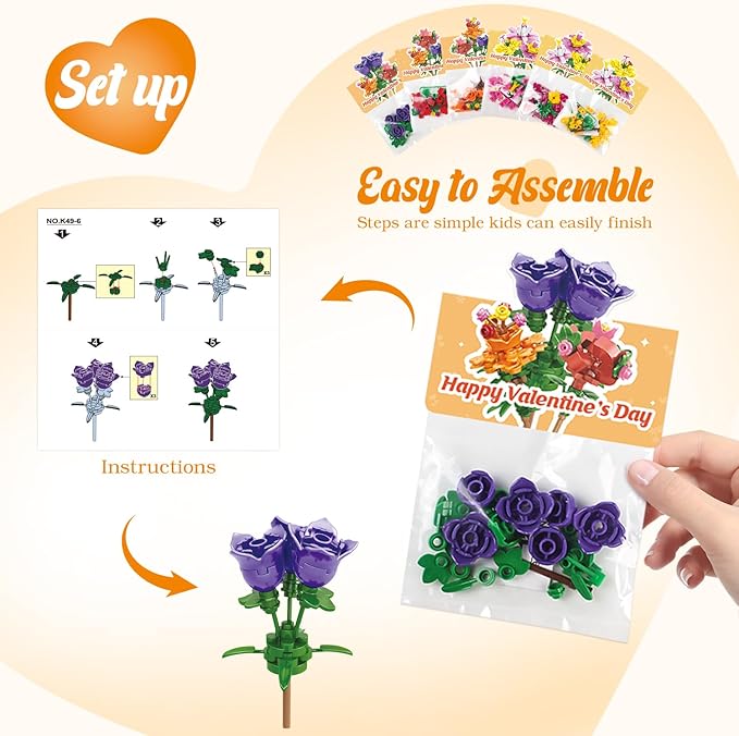 - An Excellent Candy Substitute: Ideal for kids, these flower building block kits are perfectly sized for joyous classroom exchanges and party gifts!