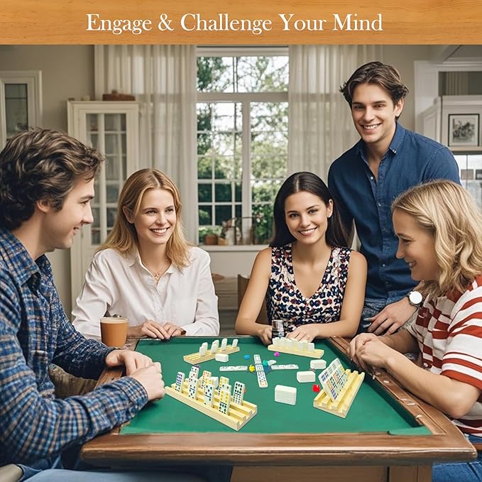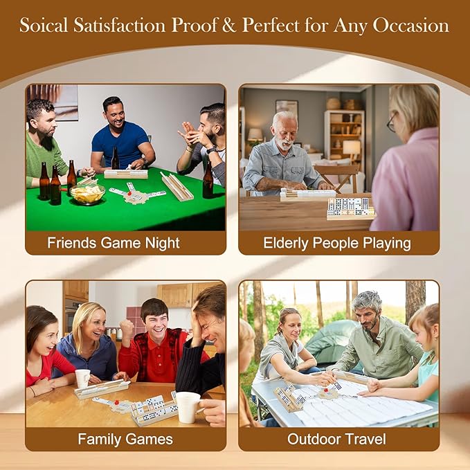 - INCLUDES 6 WOODEN RACKS TO KEEP TILES ORGANIZED: Soopotay mexican train dominoes set comes with 6 wooden tile holders, which help to keep tiles organized and stable, enabling players to concentrate on strategic gameplay without interruptions