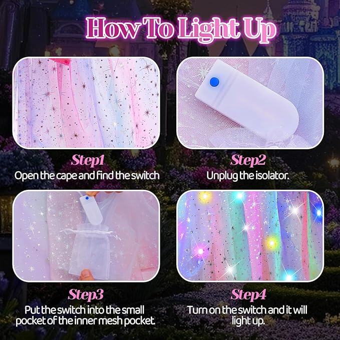 - Princess Dress Up for 3 4 5 6 7 8Year Old Girls Birthday Christmas Gifts-Magical rainbow princess dress up cape set for girls 4-6 role play, pretend play, cosplay, girls dress up, unicorn theme party, girls party, princess party, dress up party, birthday party, Christmas party, holiday celebrations. Make every little girl's dream come true with our toys for girls. Perfect Birthday gifts, Halloween gifts, Christmas gifts. Illuminate her fairy tale dream in charming unicorn personalized dress