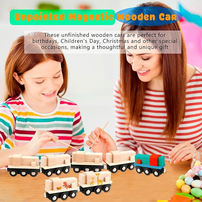 - Educational toys: this unpainted wooden train toy can be painted in any color you like and also provides endless opportunities for children to use their imagination. At the same time, it also has weak magnetism, which enhances their imagination and learning ability and stimulates their thinking