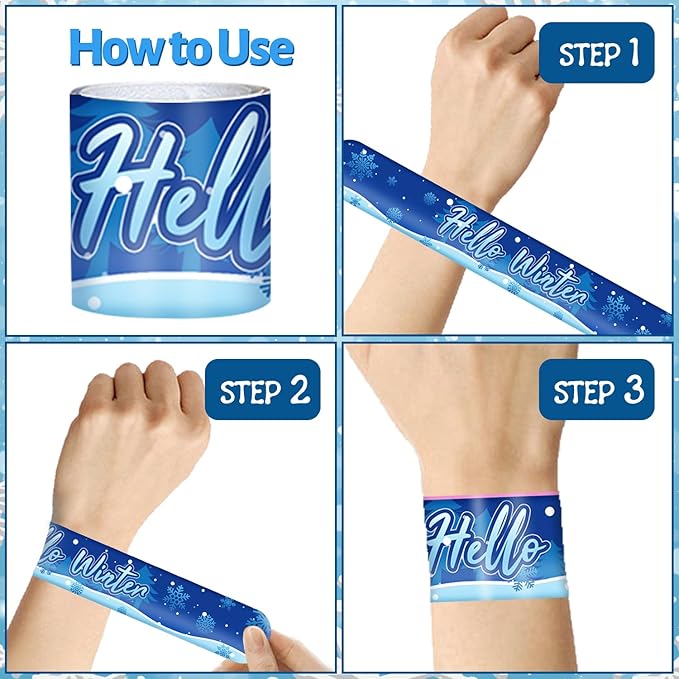 - Snowflake Slap Bracelets: Snowflake bracelets are made of safe and harmless materials, strong and durable, will not scratch your skin, very safe for children. Put snowflake bracelet on your wrist and press lightly, and it will form a comfortable circle and wear it firmly on your wrist. The snowflake birthday decorations are printed with various snowflake patterns to make your snowflake theme party more attractive