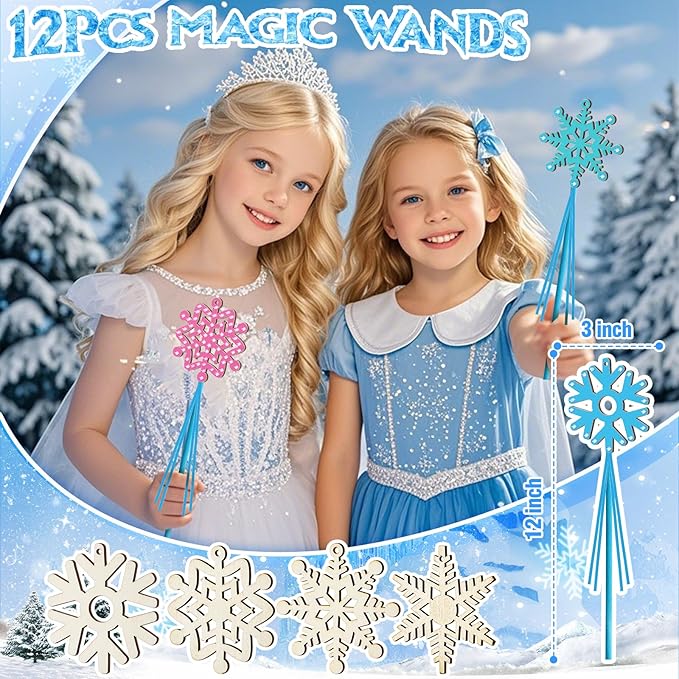Winrayk Frozen Party Favors Elsa Birthday Supplies for 12 Girls Kids, DIY Snowflake Magic Wand Gift Bag Bracelet Ring Sticker, Christmas Goody Bag Stuffer Pinata Filler Prize Winter Party Favors Decor