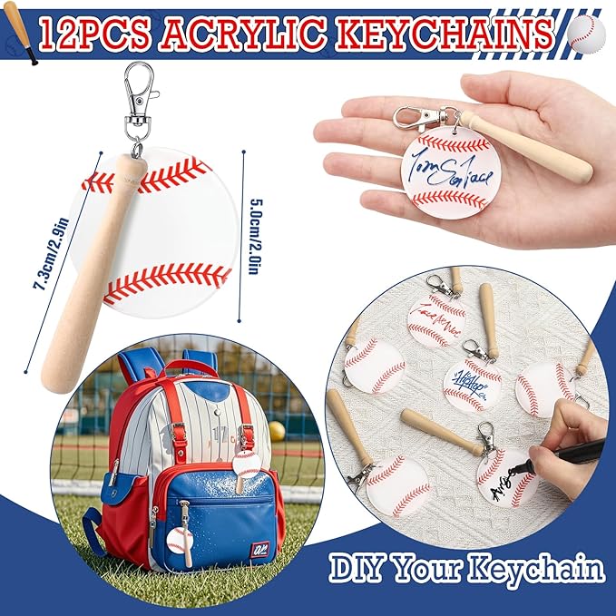 - Baseball Party Supplies: Our accessories are full of baseball elements and are the perfect addition to baseball birthday party decorations. Acrylic keychains can not only be used to dress up school bags, but also can be DIY (such as writing names). Children can use paper bags and thank you cards to give each other gifts, and silicone bracelets and baseball stickers can be used for daily decoration