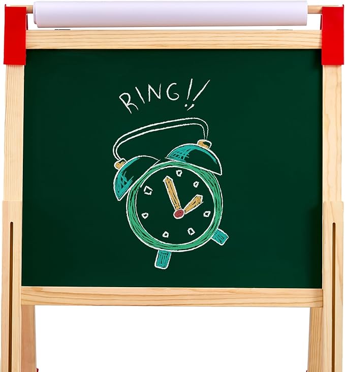 - All-In-One Set: We've packed this kids easel with everything they need! It comes with 1 x magnetic number and letter stickers set, 1 x eraser, 6 x magnetic ring clips, 1 x chalk holder, 8 x whiteboard markers, 12 x chalks, 2 x paper rolls, 1 x cloth, and 4 x paint cups—everything ready for them to dive into their next masterpiece.