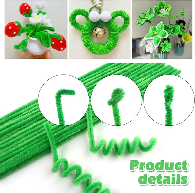 - Size and Colors: Light Green pipe cleaners, 0.24 X12 inch (6 mm x 300 mm); Enough quantity to meet your various needs of DIY craft creations