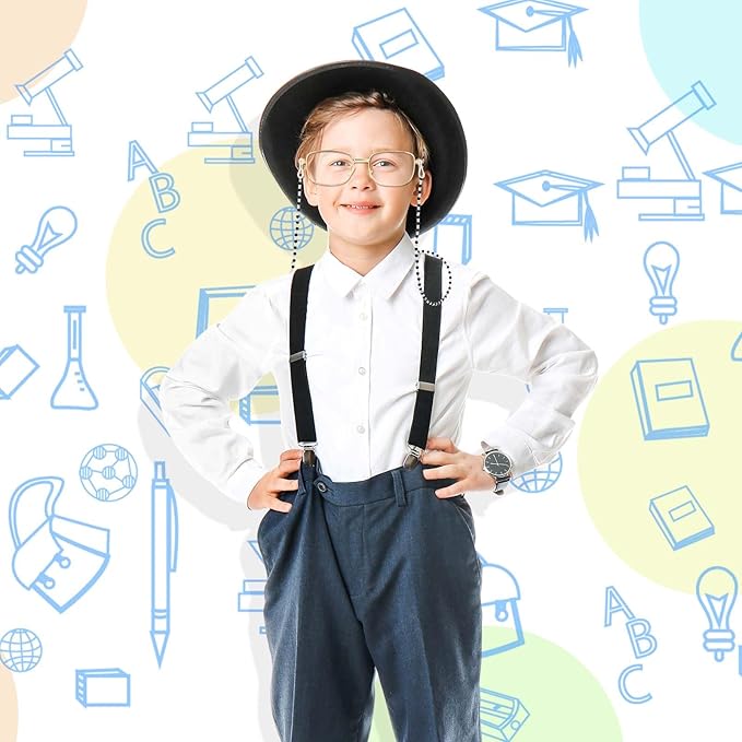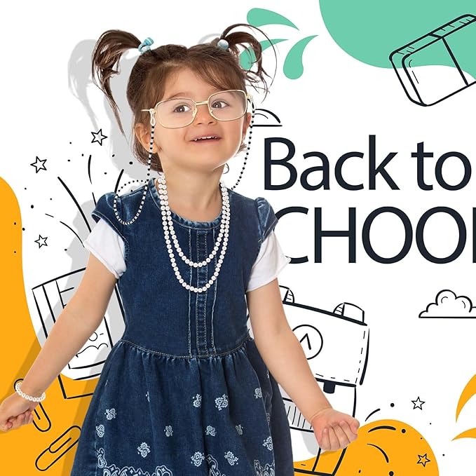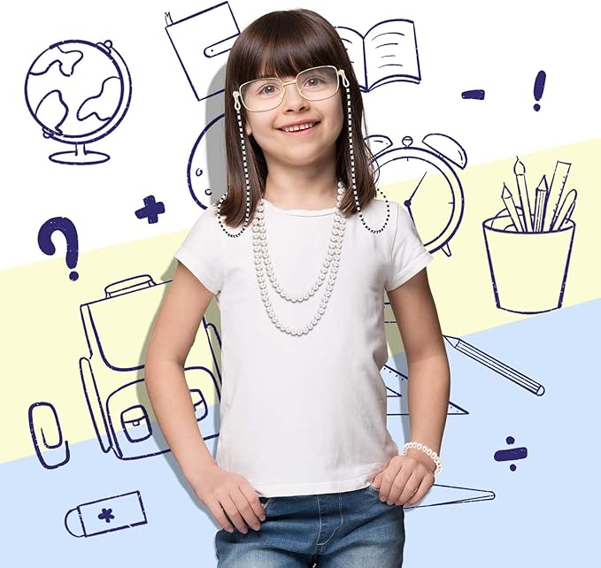 - Package Included: You will get 1 pair of small rectangular metal frame glasses,1 pcs black beaded sunglasses chains,1 pcs faux pearl beads necklaces and bracelet; a complete old Lady accessories for your 100 Days of school costume
