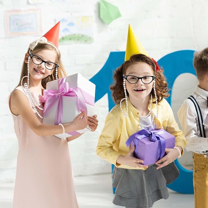 Kavoc 4Pcs Old Lady Costume Accessories Granny Grandma Dress up Eyeglasses Beaded Chain Faux Pearl Bead Necklace and Bracelet