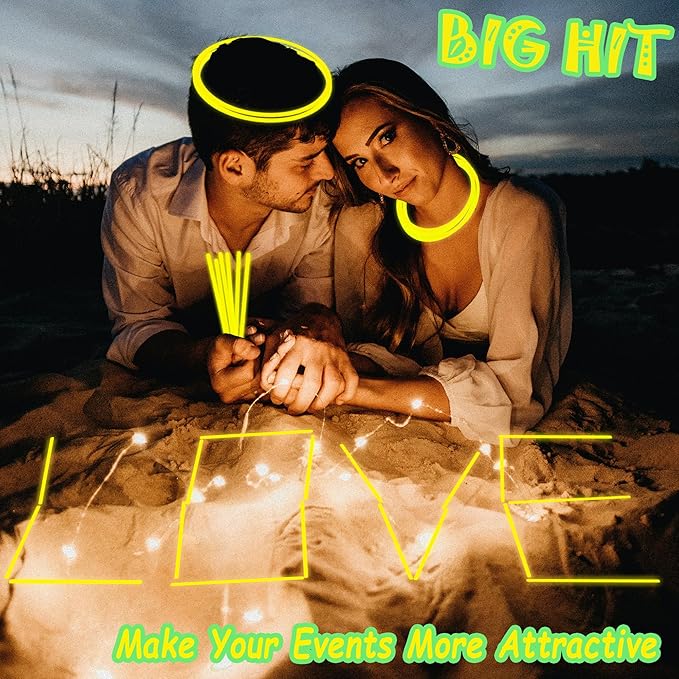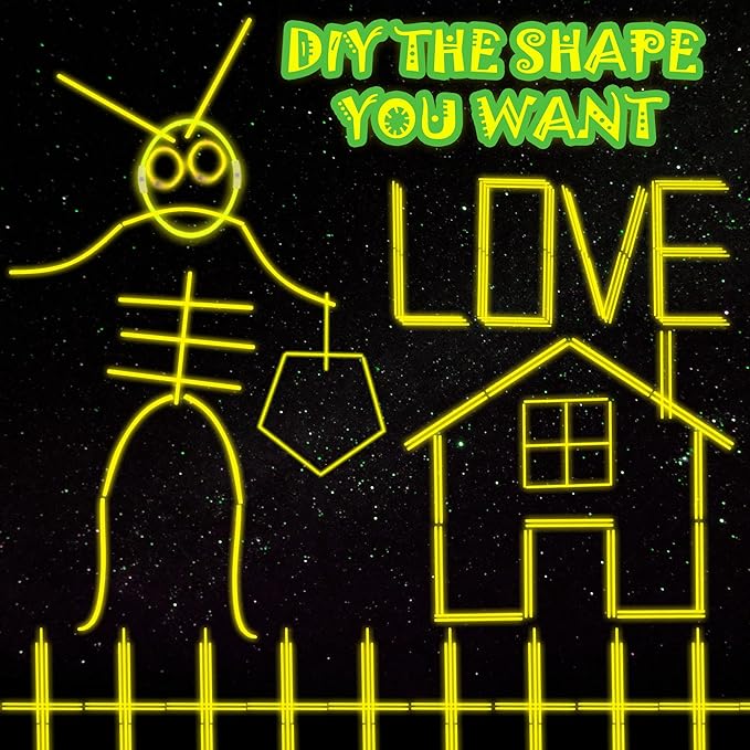- Glow Sticks Light up Your Night - Our neon glow stickers set come with 100 packs of glow stickers and connectors for making different shapes, such as bracelets, necklaces, headbands and belts. Bend and shake to activate these glow sticks, which are a huge hit at the dark night party, easy to assemble and remained colorful for quite a long time
