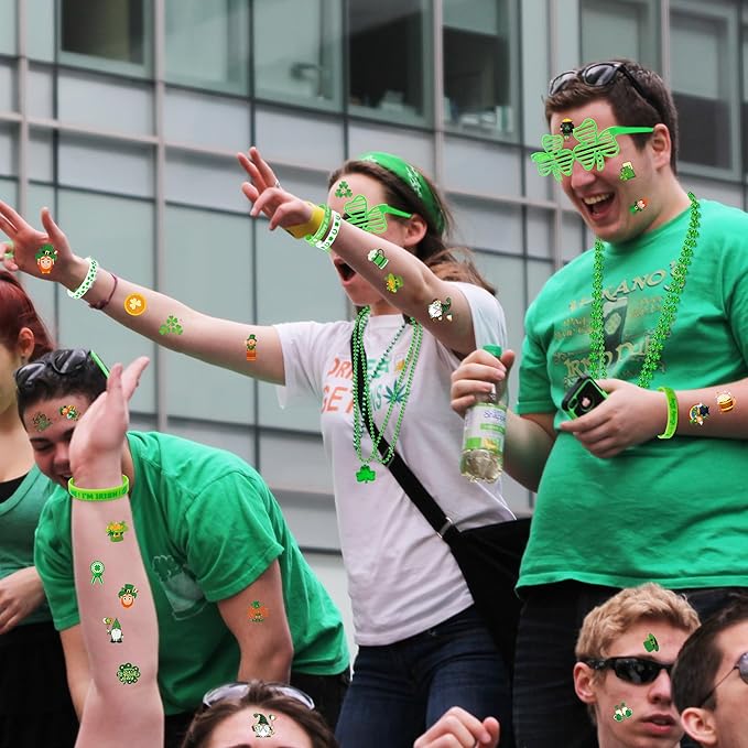 - St. Patrick's Day Collection - This comprehensive set includes 6 St. Patrick's Day glasses, 10 necklaces, 100 tattoos, and 24 bracelets, ensuring you have everything need for the festivities!