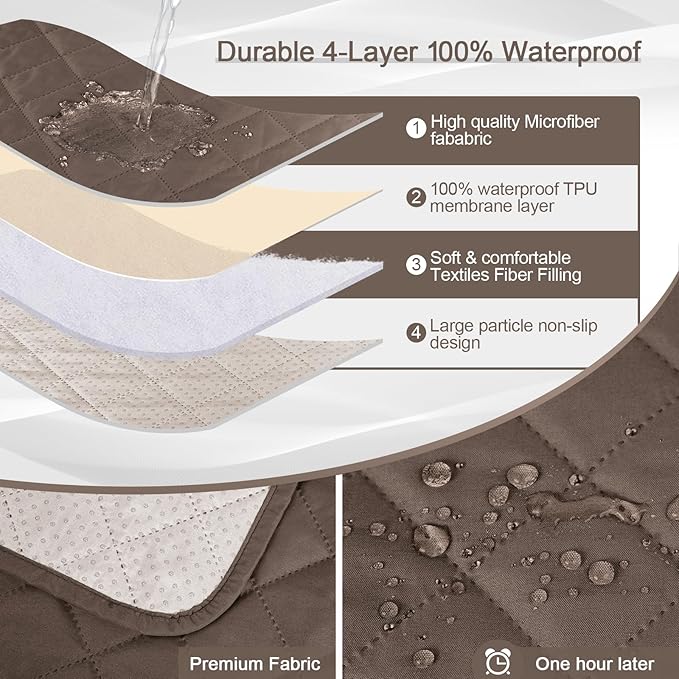 - 100% Waterproof & Comfortable: (This Recliner Couch Cover is Patented) KinCam recliner chair cover is made of high quality 100% waterproof polyester, which inner layer is filled with durable fabric, feel very cool to touch, comfortable and durable