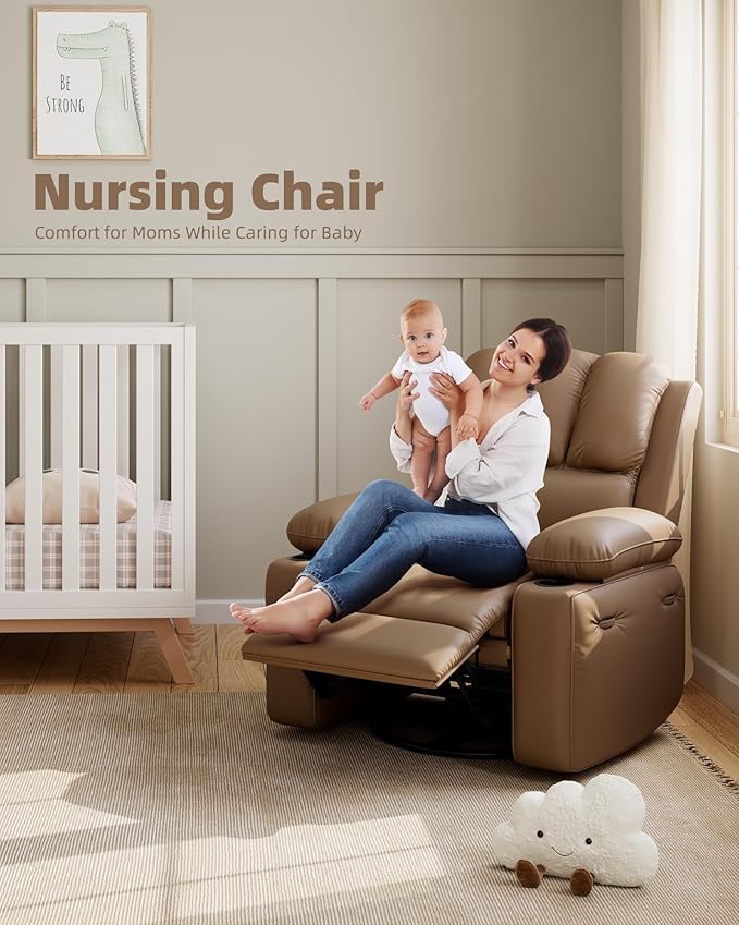 22'' Leather Recliner Chair for Adults, Overstuffed Manual Recliner Chair, Single Sofa with Cup Holder and Side Pockets, Upholstered Chair for Living Rooms, Tan