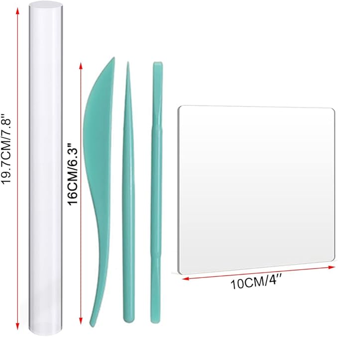- Size:Acrylic Clay Roller-19.7cm/7.8'' , Acrylic Sheet Backing Board 10X10CM/4X4''
