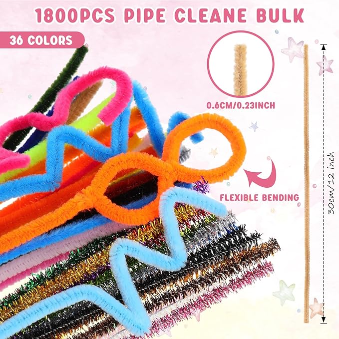 - Abundant for Using and Sharing: the package includes 1800 pieces of craft pipe cleaners, which come in 36 different colors, 50 pieces for each color, stylish and vibrant, sufficient to satisfy your various decorating and crafting needs