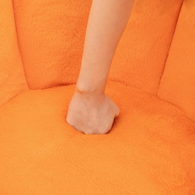 Giant Bean Bag Chair with Foot Pedals, Oversized Bean Bag Couch for Adults and Kids, Faux Fur Shell-Shaped Large Bean Bag Chair with Filler, Pumpkin Shape Sofa Chair Floor Sofa for Reading (Orange)