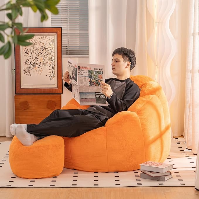 - 【Bean Bag Sofa with Foot Platform】 Bean bag chair is equipped with a comfortable footrest and ergonomic backrest, the design conforms to the human body curves and helps to relieve stress, it is made of faux fur, which is soft, durable and easy to clean, giving a comfortable and cozy feeling, increasing the warmth and intimacy of the indoor atmosphere, and keeping it beautiful and fresh for a long time.